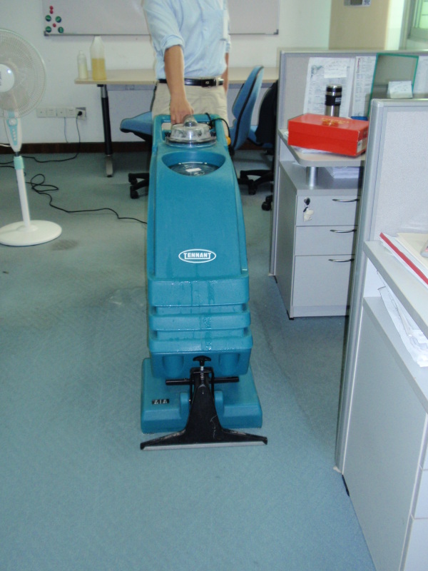 6、在给地毯清洗的同时,用吸水机吸净已完工的部分;