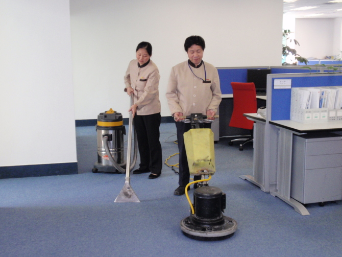 在保养过程中,吸尘是一重要部分。所以应该每天用吸尘机吸掉灰尘、砂粒等。如果是大块的纸团、牙签、果壳之类应先用垃圾铲及小毛帚将其扫除,然后再用吸尘机吸尘,可防止尘机喉管阻塞或牙签之类的利物刺破尘袋,如发现有很多水份,应及时改用吸水机或抽洗机,以防吸尘机吸进水份而损坏机件。 走廊通道多人走的地方,应采用直立滚刷式吸尘机吸尘,效果更为理想,因为它可以将藏留在纤维底部的污物及砂粒滚刷吸走,使其恢复原有的松软。